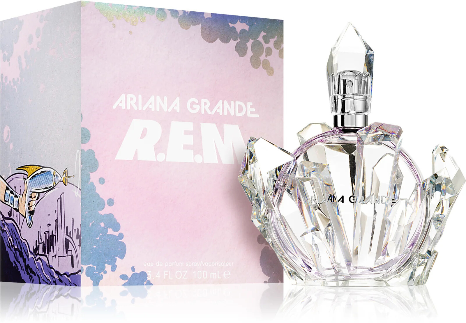 Parfémovaná voda pro ženy Ariana Grande R.E.M. je květinově orientální vůně, jejíž flakón je jako obrovský intergalaktický sen plný ženskosti a síly. Parfém Ariana Grande R.E.M je inspirován Arianinou láskou k vesmíru.