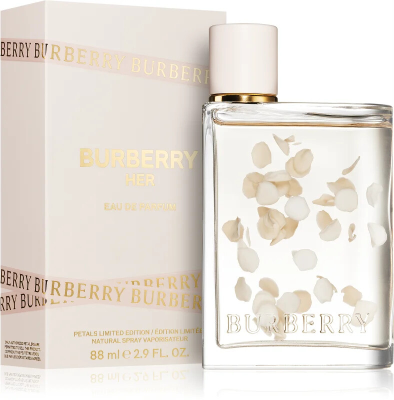 Burberry Her Eau Petals Limited Edition je zasněná a povznášející vůně, která hravě kombinuje sladkost drcených bobulí s květinovými tóny fialky a jasmínu. Tato vůně Burberry doplněná dřevem a krémovou ambrou je umístěna ve skleněném flakonu s plovoucími lístky (použité plátky lístků jsou pouze dekorativní).