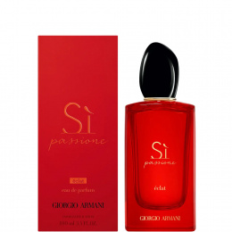 Bílé pižmo a infuze madagaskarské vanilky zahalují vůni návykovou, smyslnou kvalitou. Lahev Si Passione Eclat evokující lesk drahého kamene má rubínově červený odstín, který se umocňuje tím, jak zachycuje světlo.