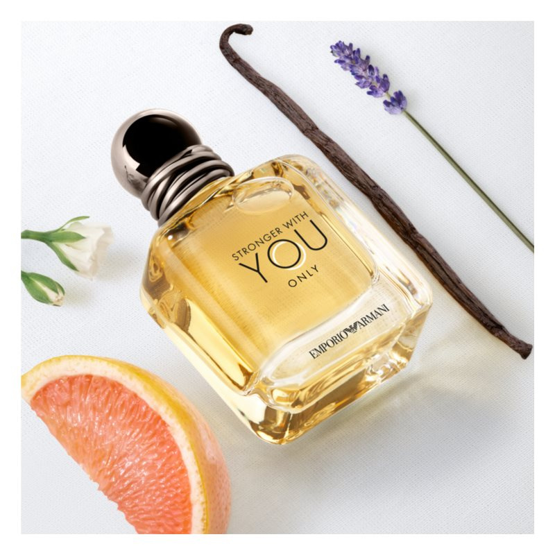Vůně, kterou vytvořila parfémářka Cécile Matton (MANE), jež je autorkou původní toaletní vody STRONGER WITH YOU, se otevírá svěžími a energickými tóny grapefruitového oleje, jehož kyselost dodává vůni jemný, jiskřivý, energizující a zároveň mužný aspekt. Vůně se dále rozvíjí srdcem z aromatické levandule získávané odpovědným způsobem v jihofrancouzské Provence. Tato ingredience se získává pomocí parní a molekulární destilace, a vytváří tak nekonečně jemnou nótu exkluzivně pro značku Armani. Tato čistá a svěží nóta se mísí se srdcem z pelargonie, květinovými akcenty a ovocným liči. Přírodní srdce pelargonie, vytvořené speciálně pro značku Armani, pochází z udržitelných zdrojů z Madagaskaru. Její nóta se získává hydrodestilací, která se dále zjemňuje rektifikací a vytváří květinově-ovocnou „růžovou“ vůni. Podmanivé základní nóty vůně v sobě kombinují výjimečnou bourbon vanilku, která byla rovněž vytvořena pro značku Armani a sklízí se na Madagaskaru, s akordem ledového kaštanu, ikonickým olfaktorickým podpisem kolekce STRONGER WITH YOU, a dále s cistovým absolutem. Společně vytvářejí ambrovou vůni s koženými aspekty, které podtrhují nepopiratelně smyslné vlastnosti vůně. K extrakci vanilky se používá postup vyvinutý speciálně pro značku Armani, který vůni dodává hřejivý, smyslný a balzámový účinek.