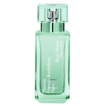Parfémovaná voda Maison Francis Kurkdjian Aqua Media Cologne Forte, je ztělesněním rovnováhy a harmonie. Tím, že evokuje vodu i světlo, zelená je barvou ve středu hranolu duhy a odráží rovnováhu v pohybu. Vůně je plná svěží energie a vitality, jež vykouzlí dobrou náladu i úsměv na tváři.