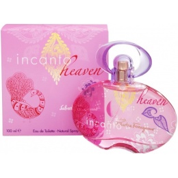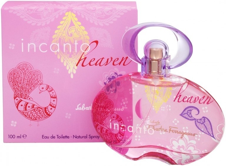Nová linie vůní značky Salvatore Ferragamo je inspirována vzdušnými zámky v oblacích, tužbami a sněním s otevřenýma očima o kouzlech a hrdinech: právě taková je Incanto Heaven. Představme si zemi opředenou záhadami, kde vládne štěstí a věčná krása, svět plný barev, kde rozkvétají ty nejkrásnější a nejvoňavější květy, kde nádherní pávi rozkládají své královské vějíře zářící všemi odstíny duhy a kde panuje atmosféra nikdy nekončícího štěstí. Právě do takového ráje nás zve okouzlující Incanto Heaven, která nás tam zanese na křídlech svých pozoruhodných vonných akordů. Incanto Heaven je kouzelnou ovocně květinovou vůní, do níž její autorka Karine Dubreuil ze společnosti Mane vdechla veselou duši plnou života a barev. Původní flakón Incanto si i nyní zachovává svůj tvar, ale mění své barevné pojetí – rozpoutává se na něm nebeský vír barev v kombinaci s ohňostrojem žlutých a nachových kašmírových vzorů. Výsledek připomíná páva – symbol Incanto Heaven - který právě rozprostřel svou královskou ozdobu a celkový dojem doplňuje i jeho korunka v podobě purpurového uzávěru. Krabička září jemně růžovým odstínem, který krášlí něžný bílý vzor. Nechybí ani symbol Incanto Heaven v podobě pest rozjasňuje snový jemně růžový podklad s bílým potiskem. Doplňkem, přinášejícím nebeský pozdrav Incanto Heaven, je pestrobarevný otisk kašmíru a symbol ráje - páv s rozprostřeným ocasním peřím. Flakón i obal jsou dílem designérky Sylvie de France.