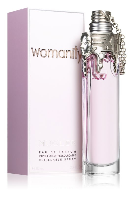 Světoznámý a unikátní návrhář, vizionář, fotograf a tvůrce parfémů, Thierry Mugler, odhaluje po 4 letech příprav své další tajemství. Umělec, který se proslavil šokujícími modely, které jsou matoucí svou zjevnou neláskou k ženám a přesto tolik citlivé k jejich ženskosti. V roce 2010 představuje Thierry Mugler nový svěží pohled na dnešní ženu. Zaměřuje se na tvořivou sílu, na neviditelné pouto a energii, které sjednocují všechny ženy. Tento nadčasový pocit intimity, porozumění a intuice nazval stejně jako svůj nový parfém - WOMANITY. Parfém, který je jako spontánní úsměv, třpytivý a zářící a je vnímán stejně jako explozivní chuť středomořského ovoce rozkrojeného na slunci. Jemně „mléčný“ tón fíkových plodů, propojen s vůní jemnou a atraktivní, pronikavou, znepokojující, až zvířecí – s vůní kaviáru. Základ vůně je elegantní a smyslný a prodlužuje omamné aroma díky svěžím zeleným fíkovým listů a něžnému fíkovému dřevu. Paradoxní vůně zabalena do paradoxního flakonu - drahocenného uměleckého díla poprášeného patinou času, které se jako klenot dědí z generace na generaci. Inspirován minulostí i budoucností, kovový šperk, který v sobě nese tajemný univerzální jazyk.